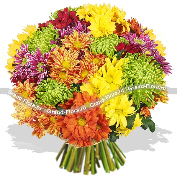 Осенний блюз - букет из разноцветных хризантем